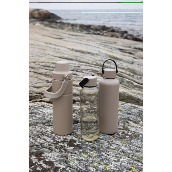Deze waterfles is gemaakt van BPA-vrij RCS-gecertificeerd rPET en is perfect voor je dagelijkse hydratatiebehoeften. Het moderne en minimalistische ontwerp kenmerkt de populaire Baltimore collectie, waardoor hij zowel praktisch als visueel aantrekkelijk is. Het PU handvat voegt samen met de roestvrijstalen dop een vleugje verfijning toe. Niet geschikt voor vaatwasser of magnetron, alleen handwas. Alleen voor koude dranken. Gecertificeerd door RCS (Recycled Claim Standard), RCS-certificering garandeert dat de hele toeleveringsketen van gerecyclede materialen gecertificeerd is. Het totale gerecyclede gehalte is gebaseerd op het totale productgewicht. Dit product bevat 61% RCS-gecertificeerd gerecycled PET.